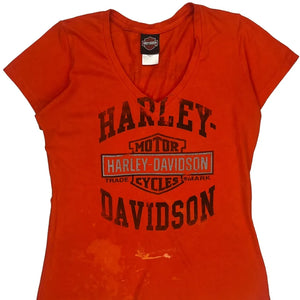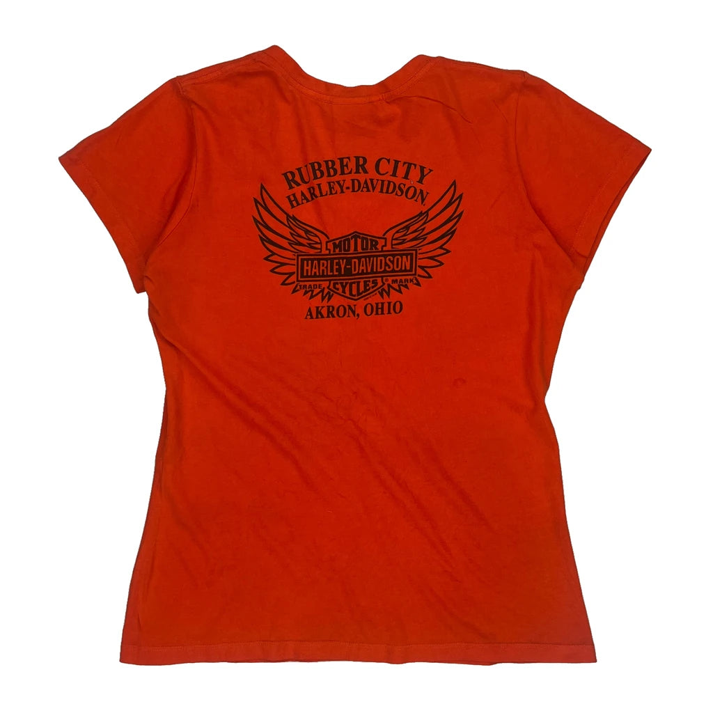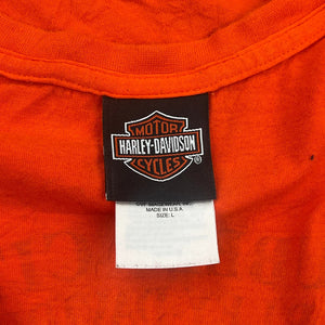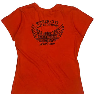 Made In USa Rubber City Harley Davidson T-Shirt - Large Orange Cotton