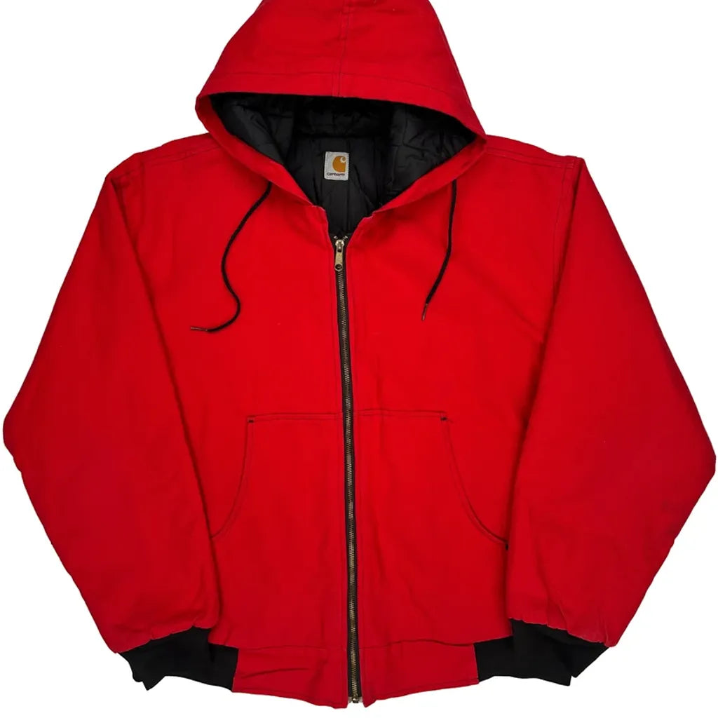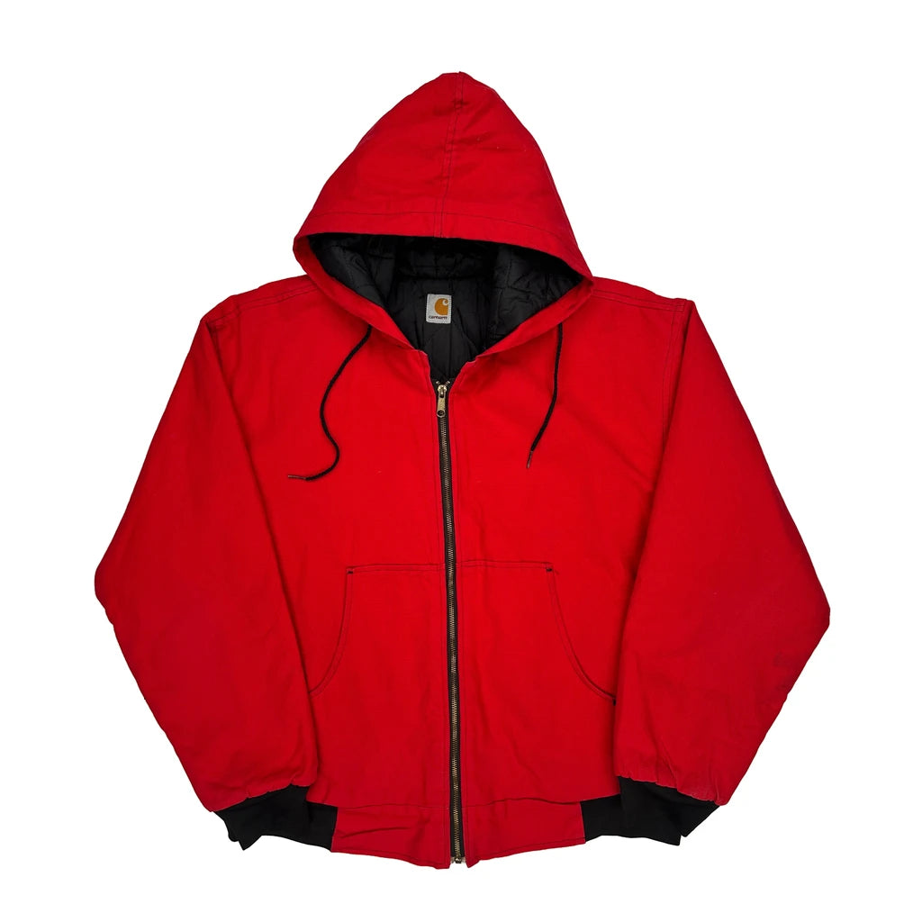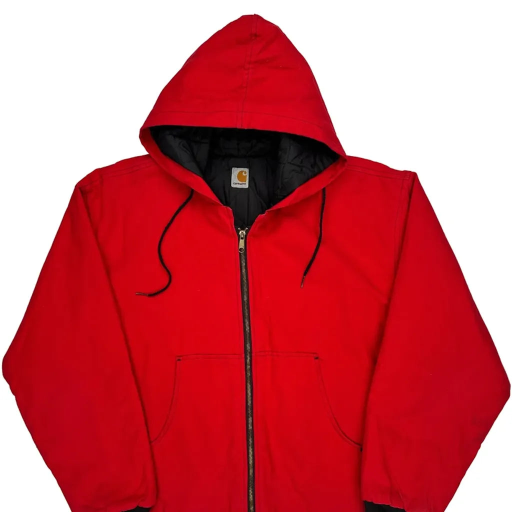 Red Carhartt Hoodie With Zipper Closure And Drawstring. No Visible Marks Or Faults.