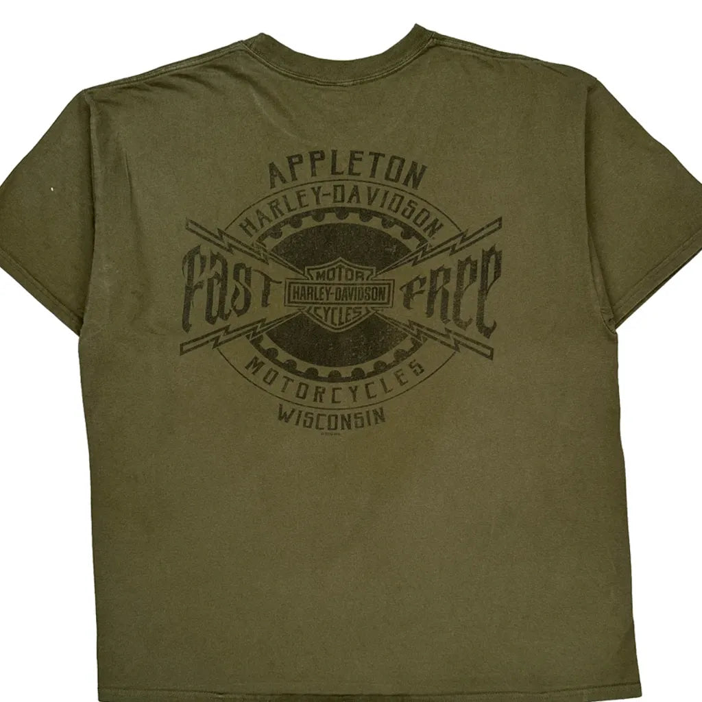 Motorcycles Harley Davidson Graphic T-Shirt - XL Green Cotton