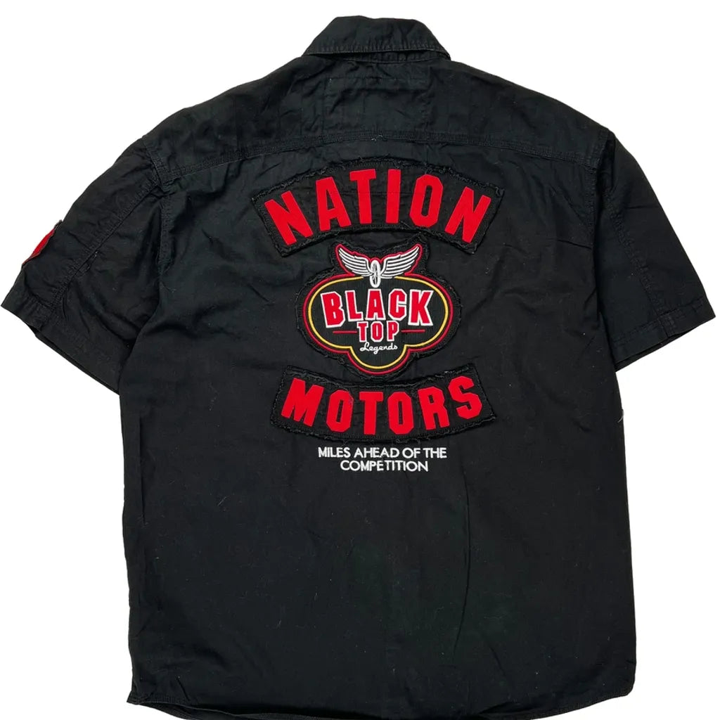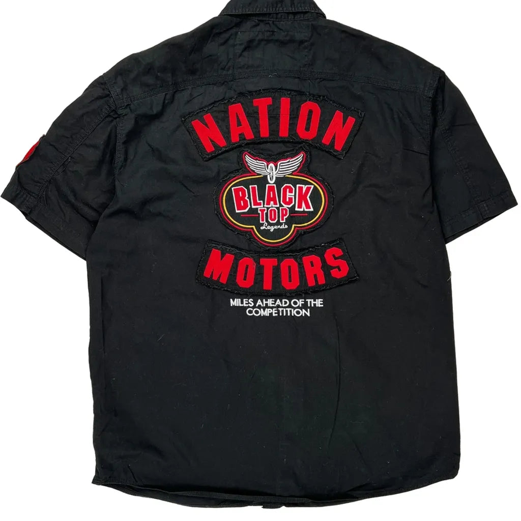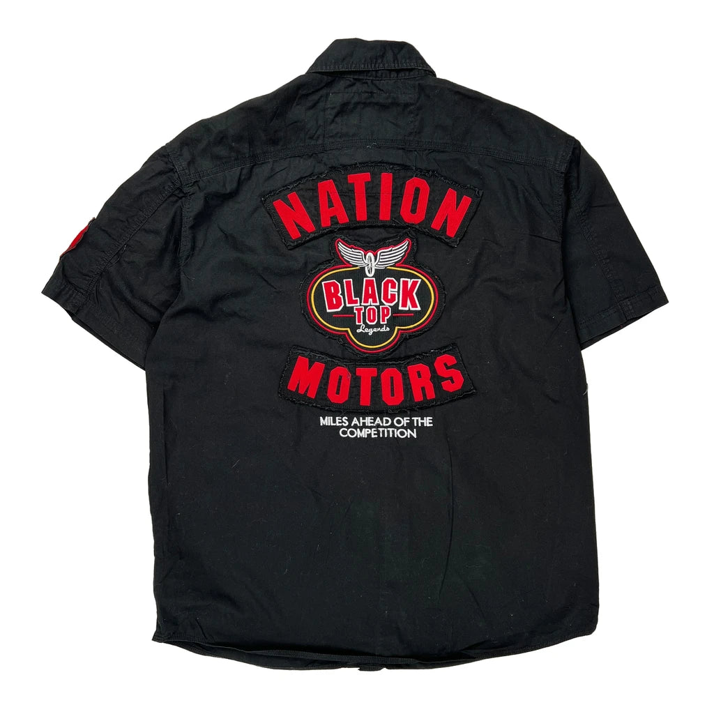 Black Short Sleeve Shirt With Nation Motors Graphic And Patches