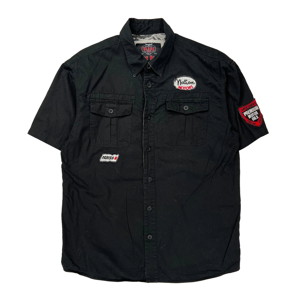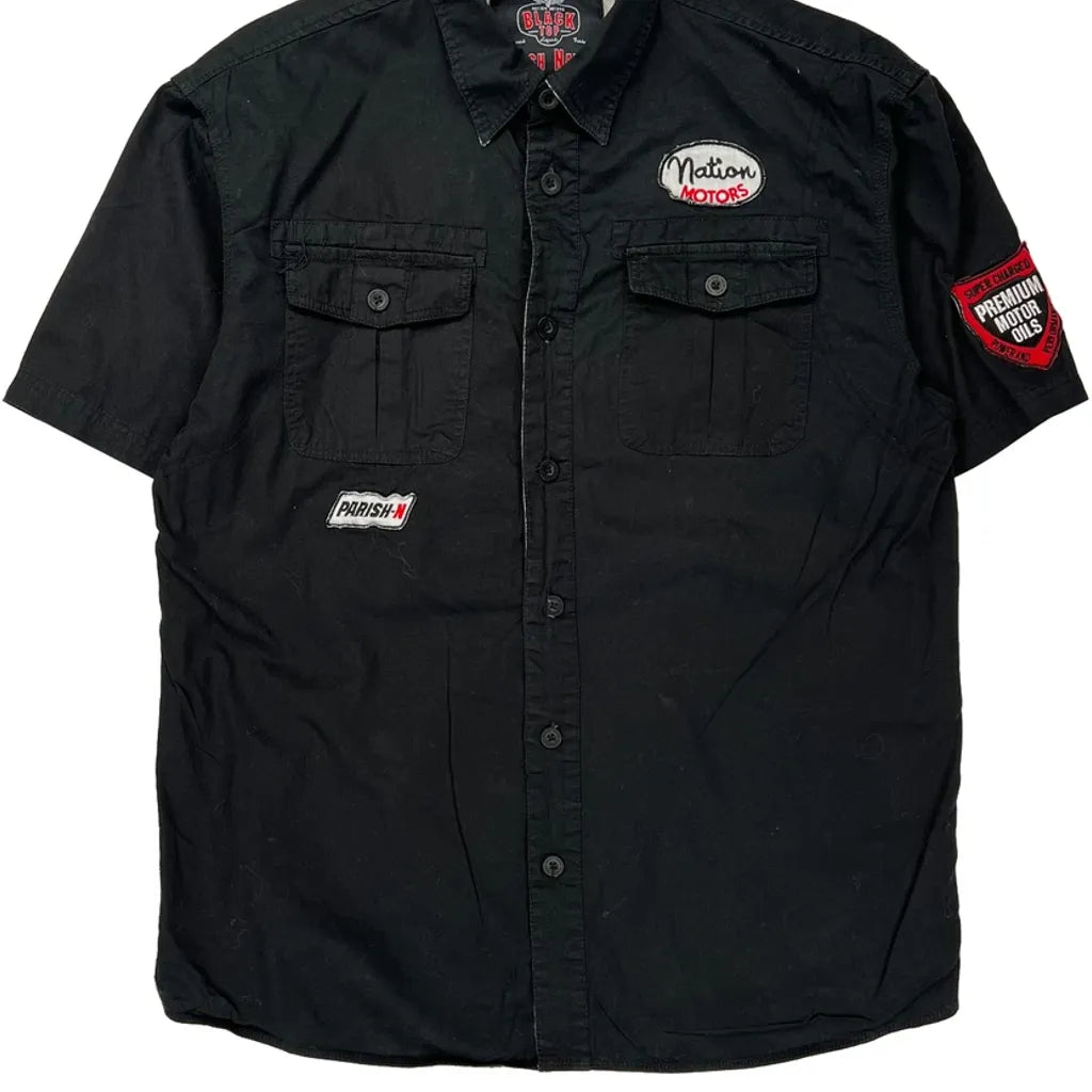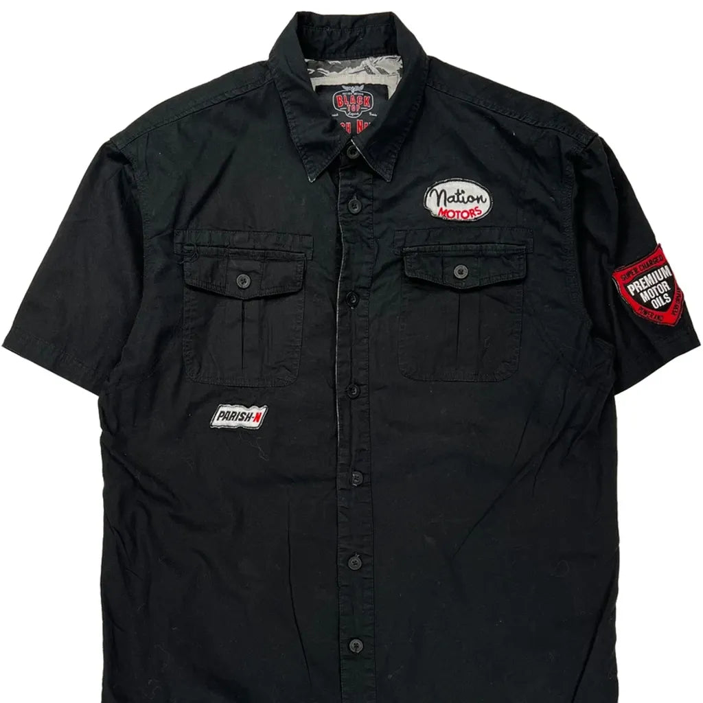 Black Short Sleeve Shirt With Nation Motors Graphic And Patches