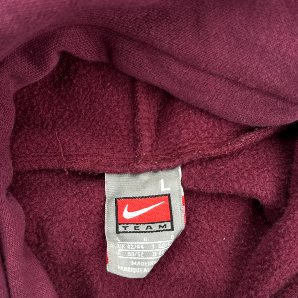 Nike College Hoodie - Large Burgundy Cotton Blend