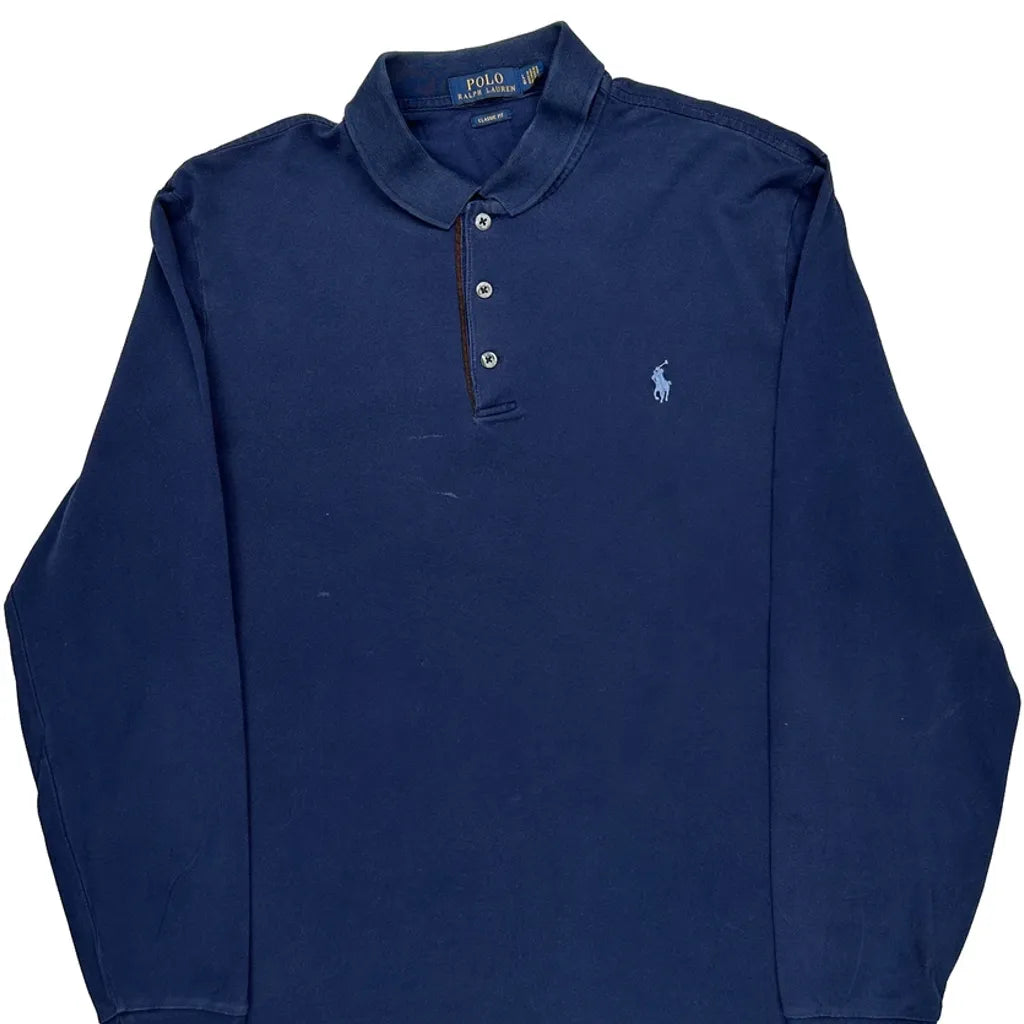 Polo By Ralph Lauren Long Sleeve Polo Shirt - Large Navy Cotton