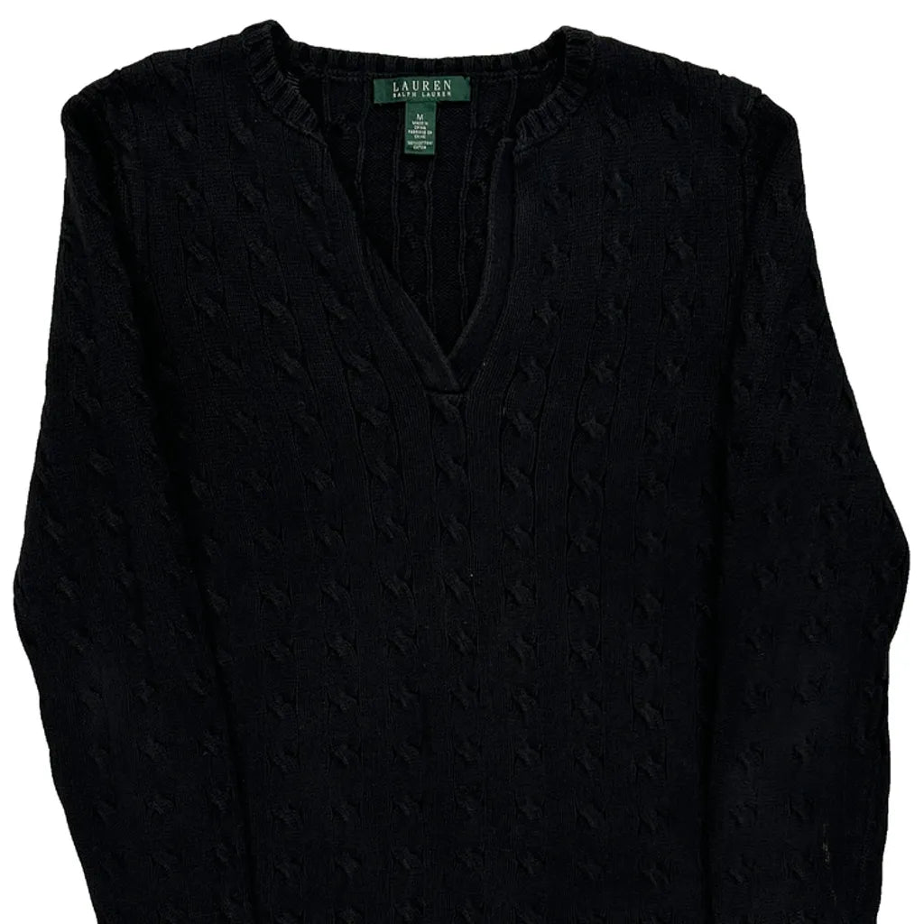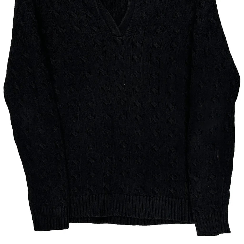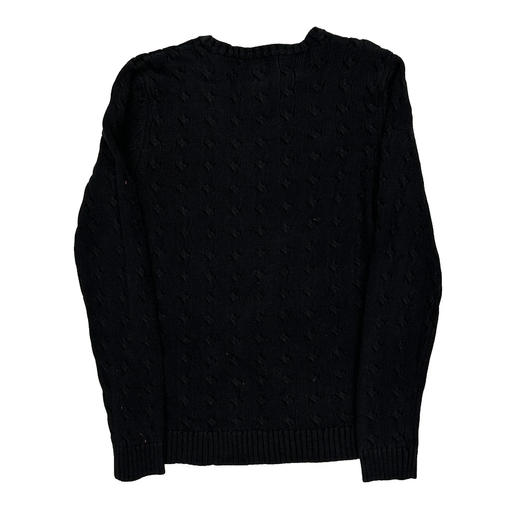 Ralph Lauren Cable Knit Jumper - Medium Black Cotton