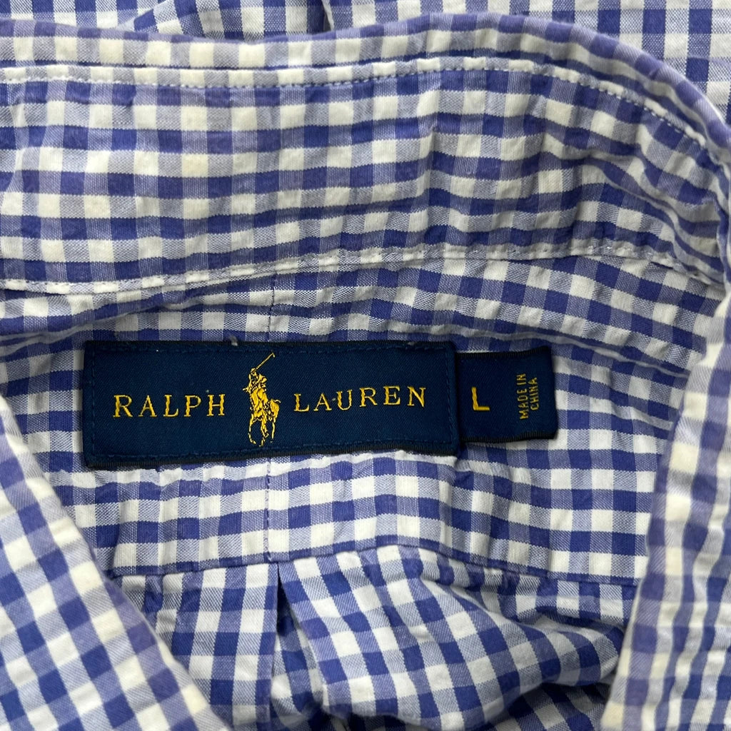 Ralph Lauren Checked Short Sleeve Shirt - Large Blue Cotton