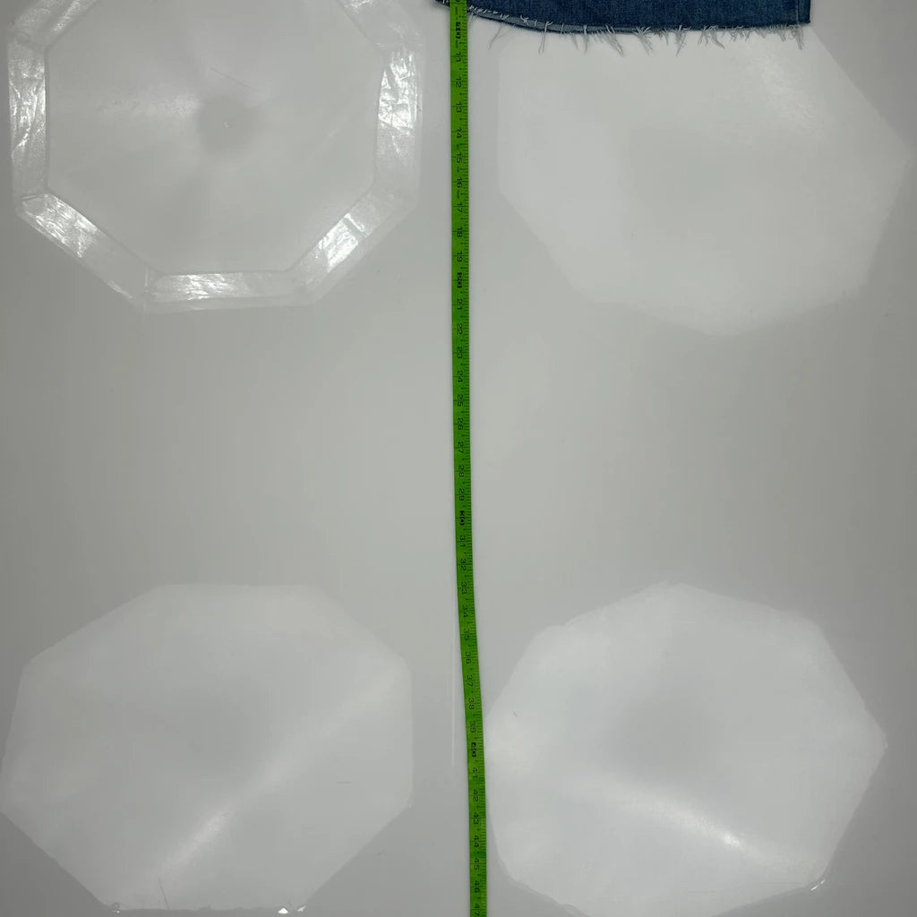 Spider Web Gloe Denim Shorts, fit a 36″ Waist and 11″ inseam.