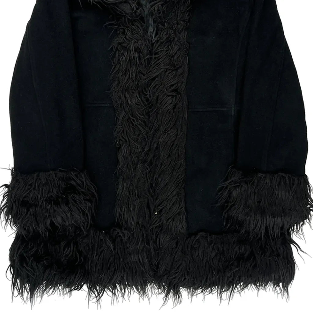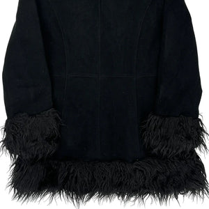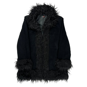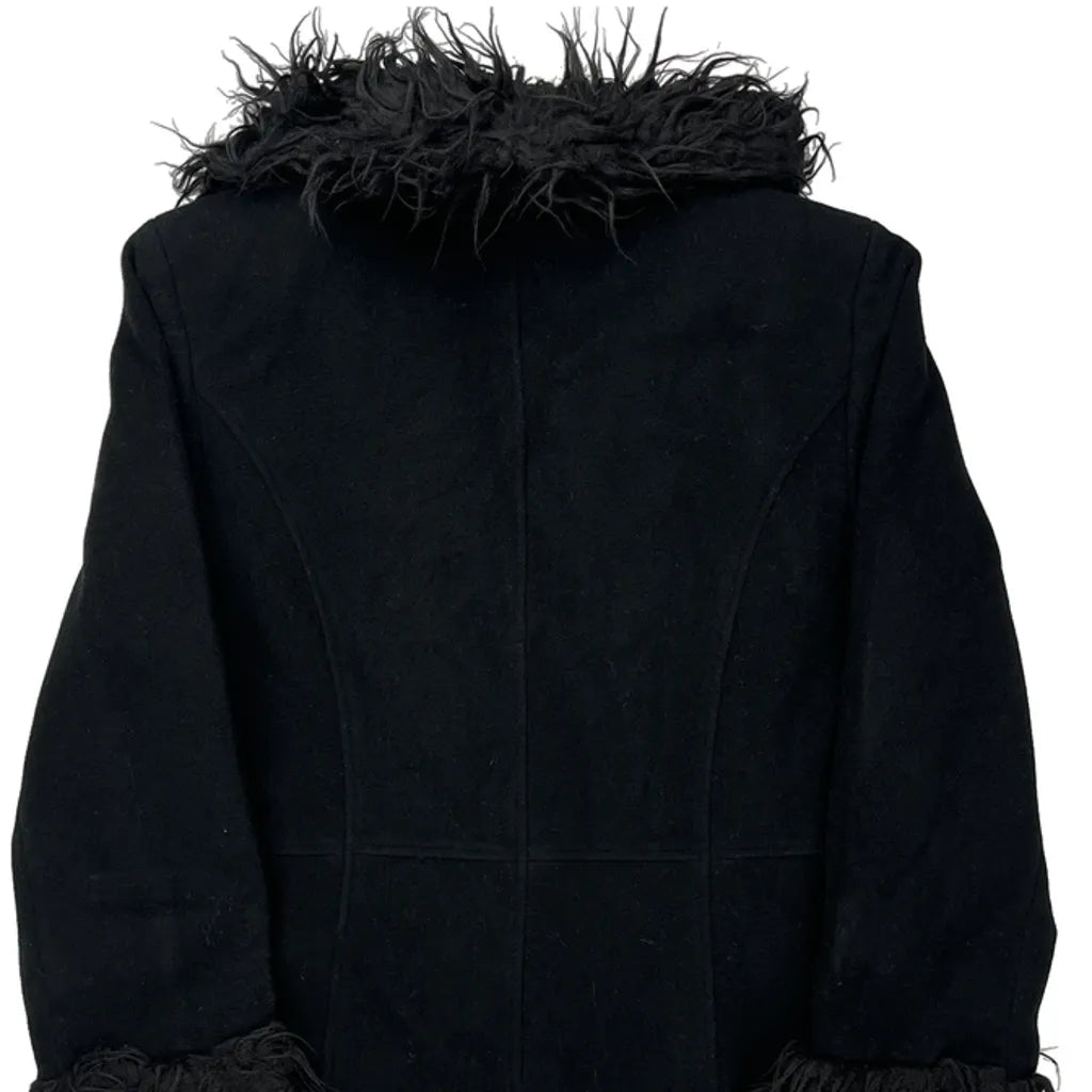 Black Coat With Faux Fur Trim On Collar, Cuffs, And Hem. Fits Medium