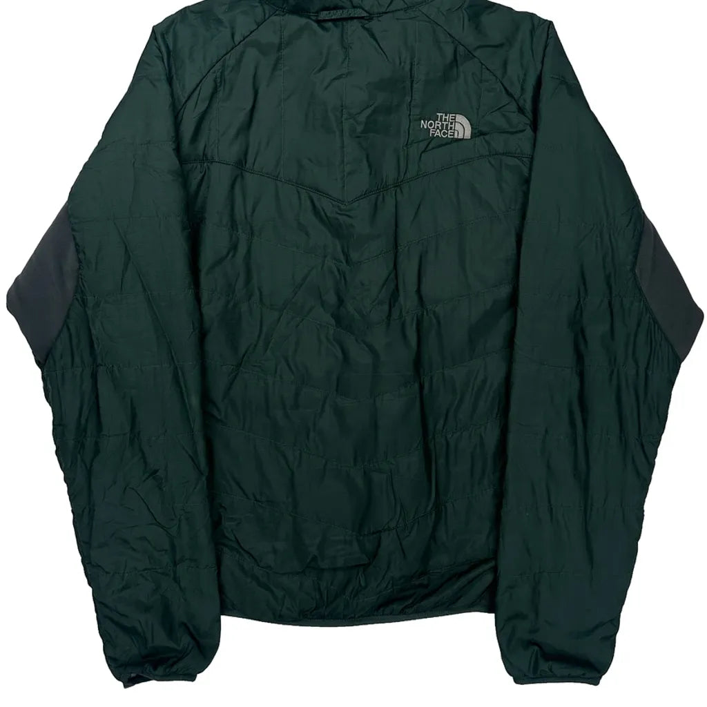 Green Jacket With Zipper Closure, Small burnt hole on back of sleeve.