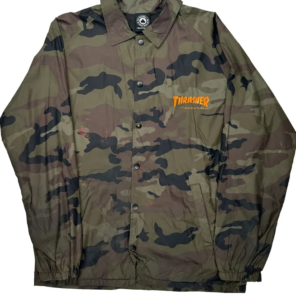 Thrasher Camo Windbreaker With Logo Print, Paint Marks