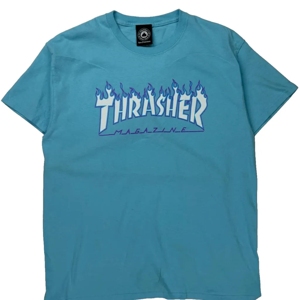 Thrasher Graphic T-Shirt - Large Blue Cotton