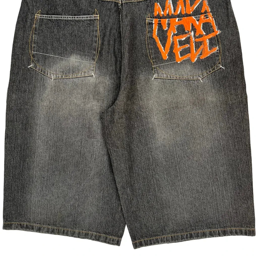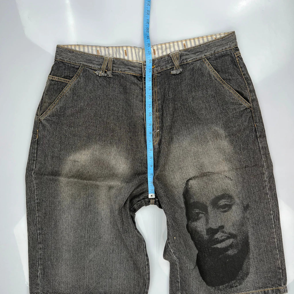 Tupac Markaveli Graphic Denim Shorts - 44W 13L Grey Cotton
