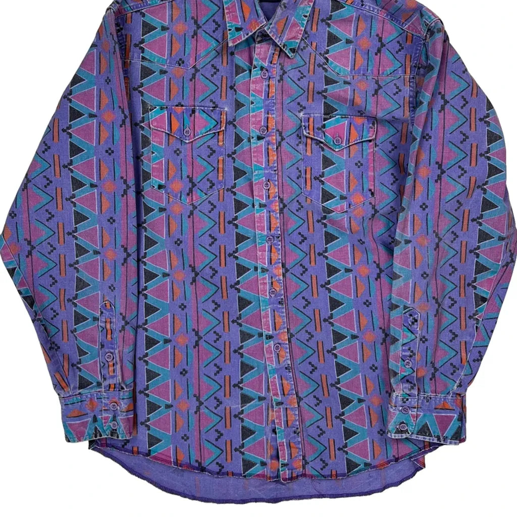 Wrangler Patterned Shirt - Large Purple Cotton